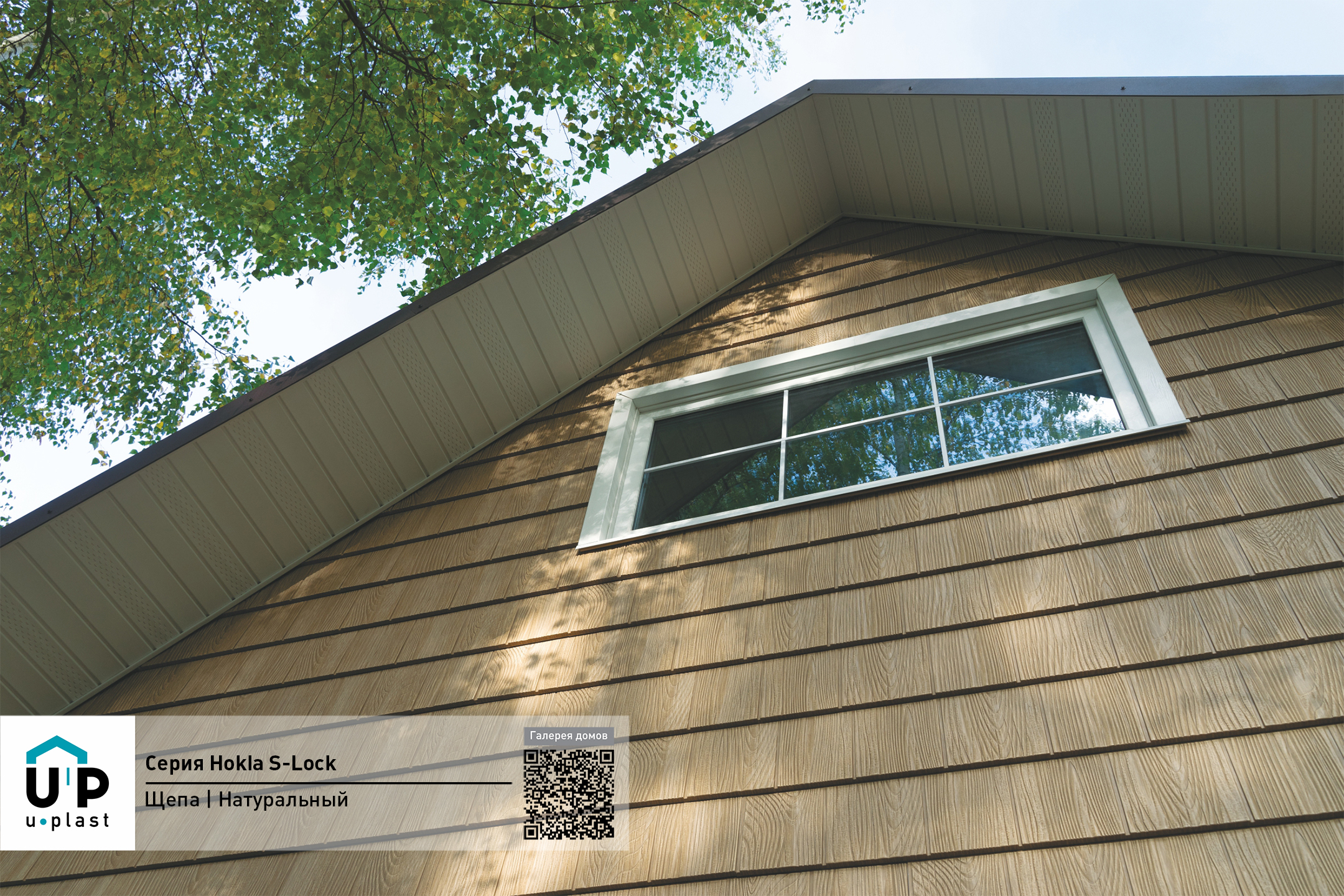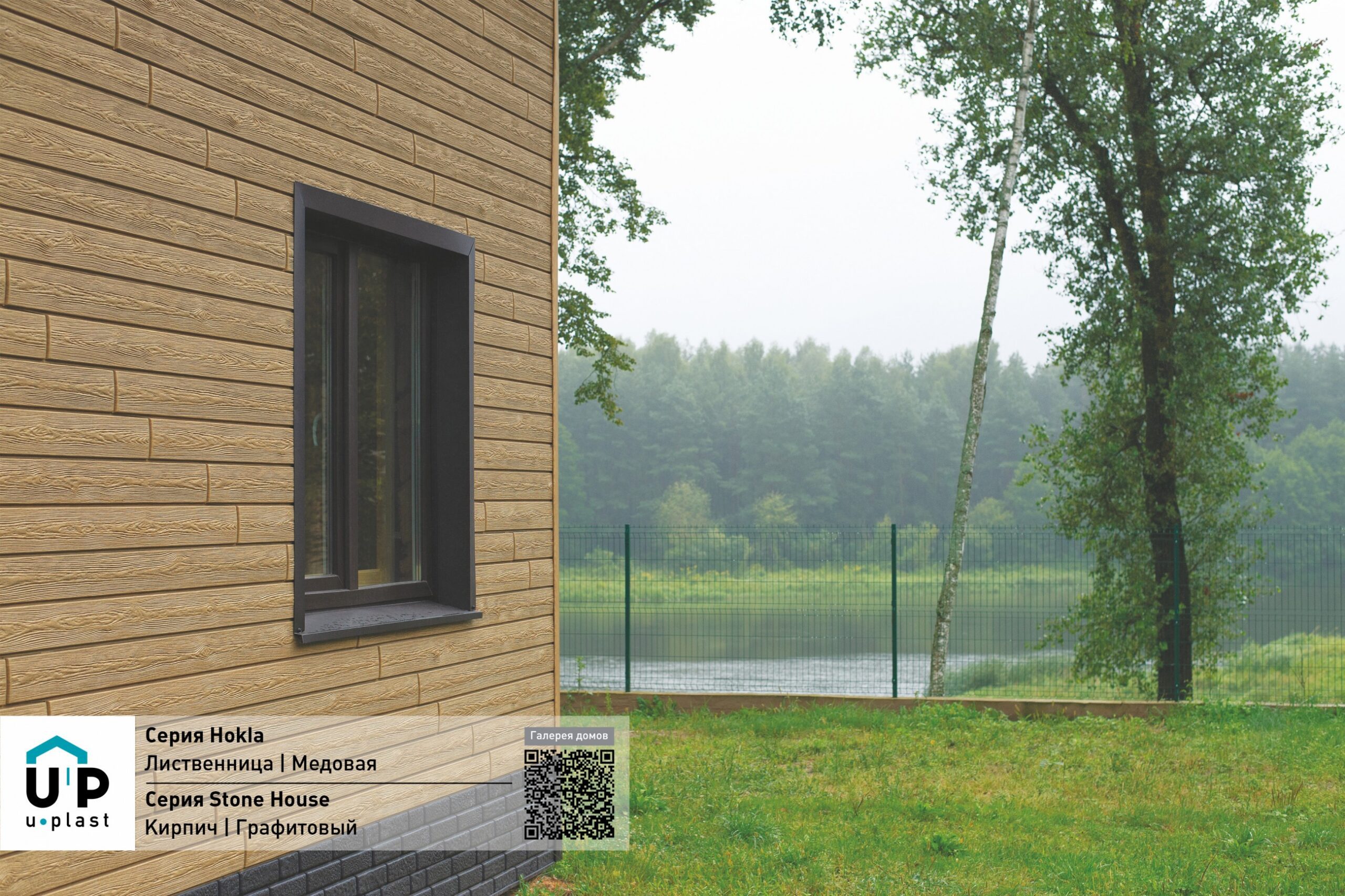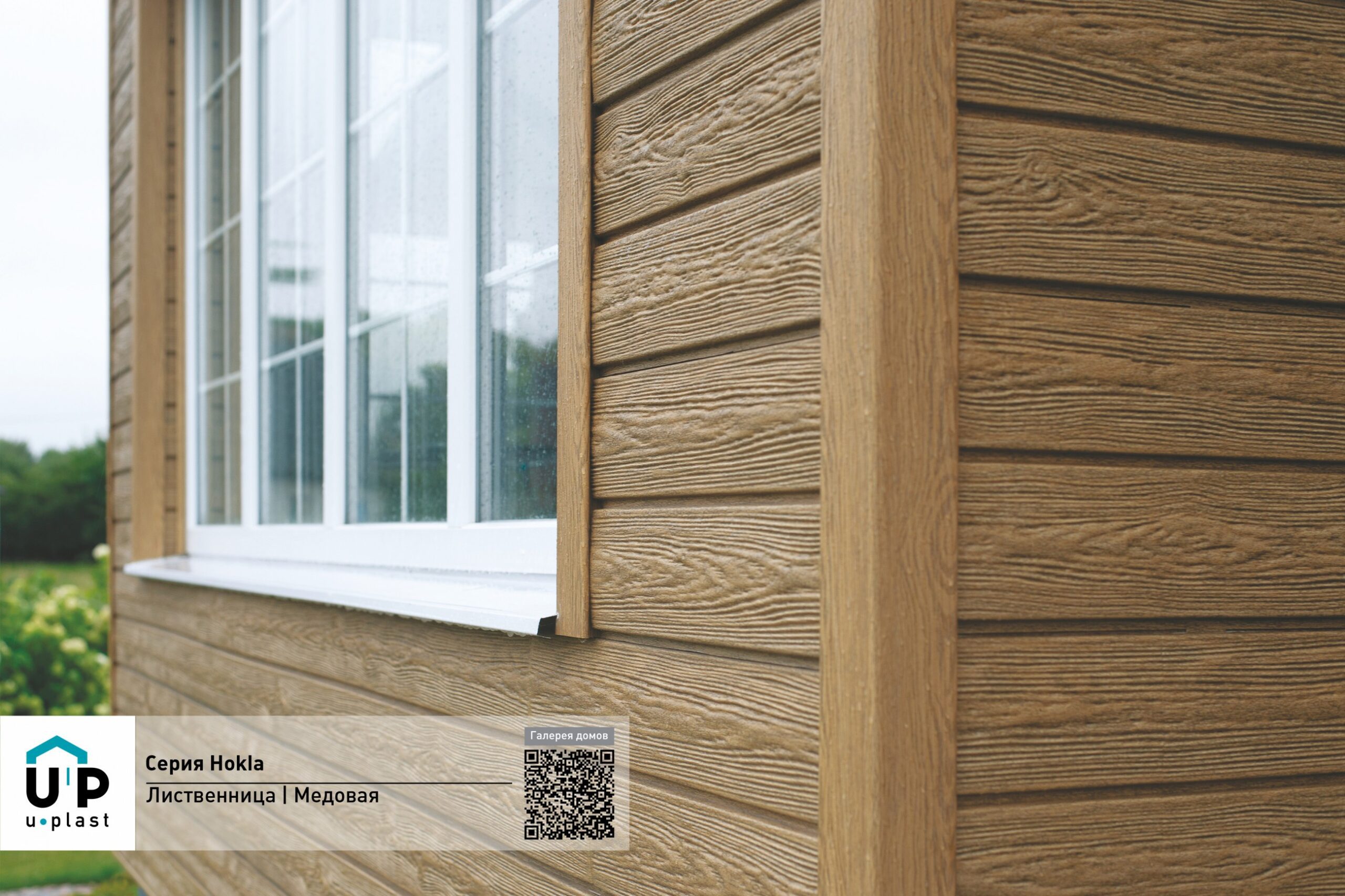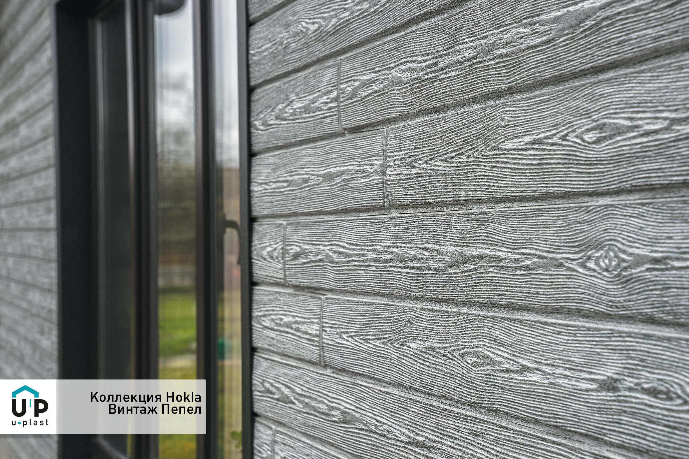 Фасадные панели Хокла имитируют текстуру дерева в облицовке здания. Благодаря системе двойного замка сайдинг можно монтировать без соединительных планок — так стена выглядит цельной.