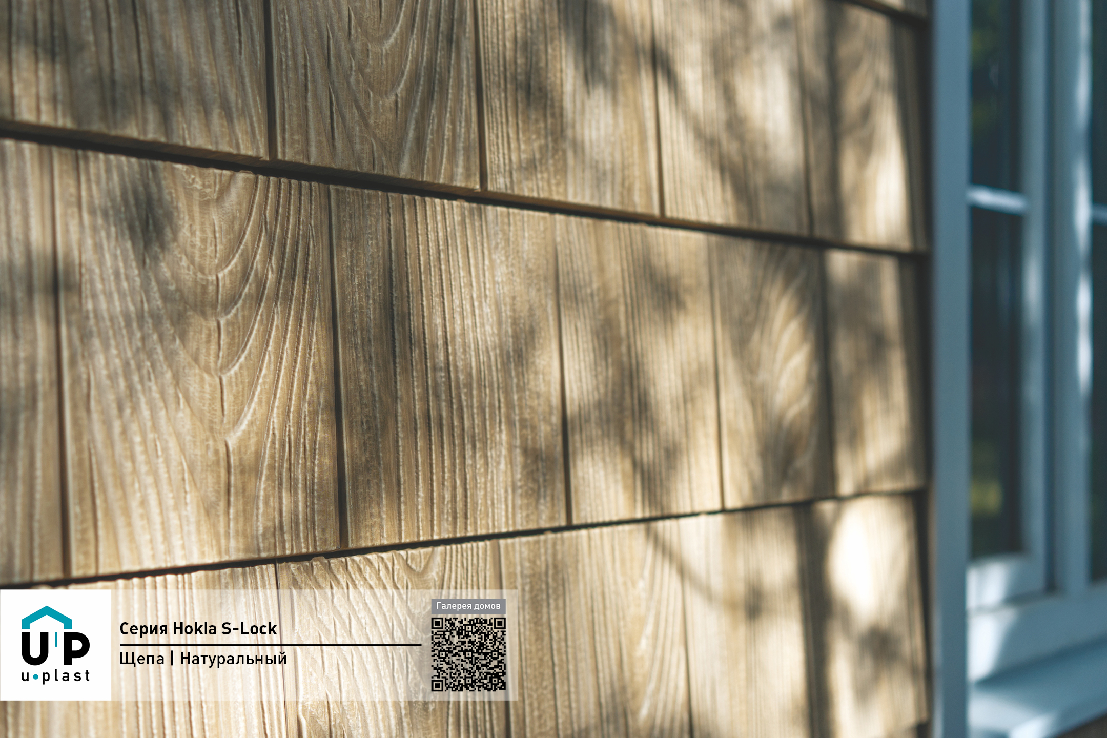 Коллекция Щепа – новинка 2023 года в серии Hokla S-Lock фасадных панелей нового поколения. Каждая дощечка детально повторяет внешний облик реальной щепы, нарубленной вдоль волокон натурального дерева.